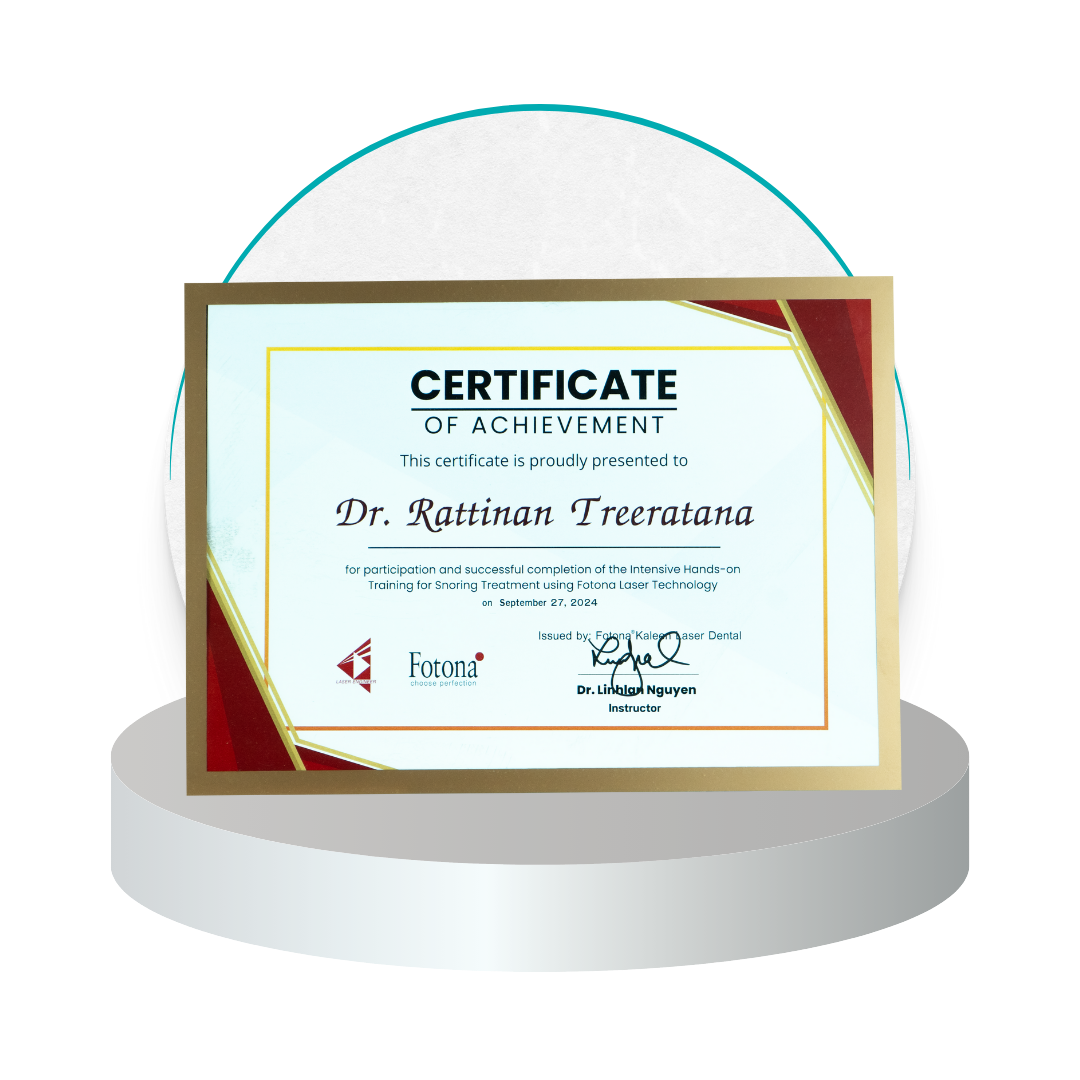 Dr. Rattinan Treeratana completed hands-on training in the treatment of snoring using laser technology from Fotona.