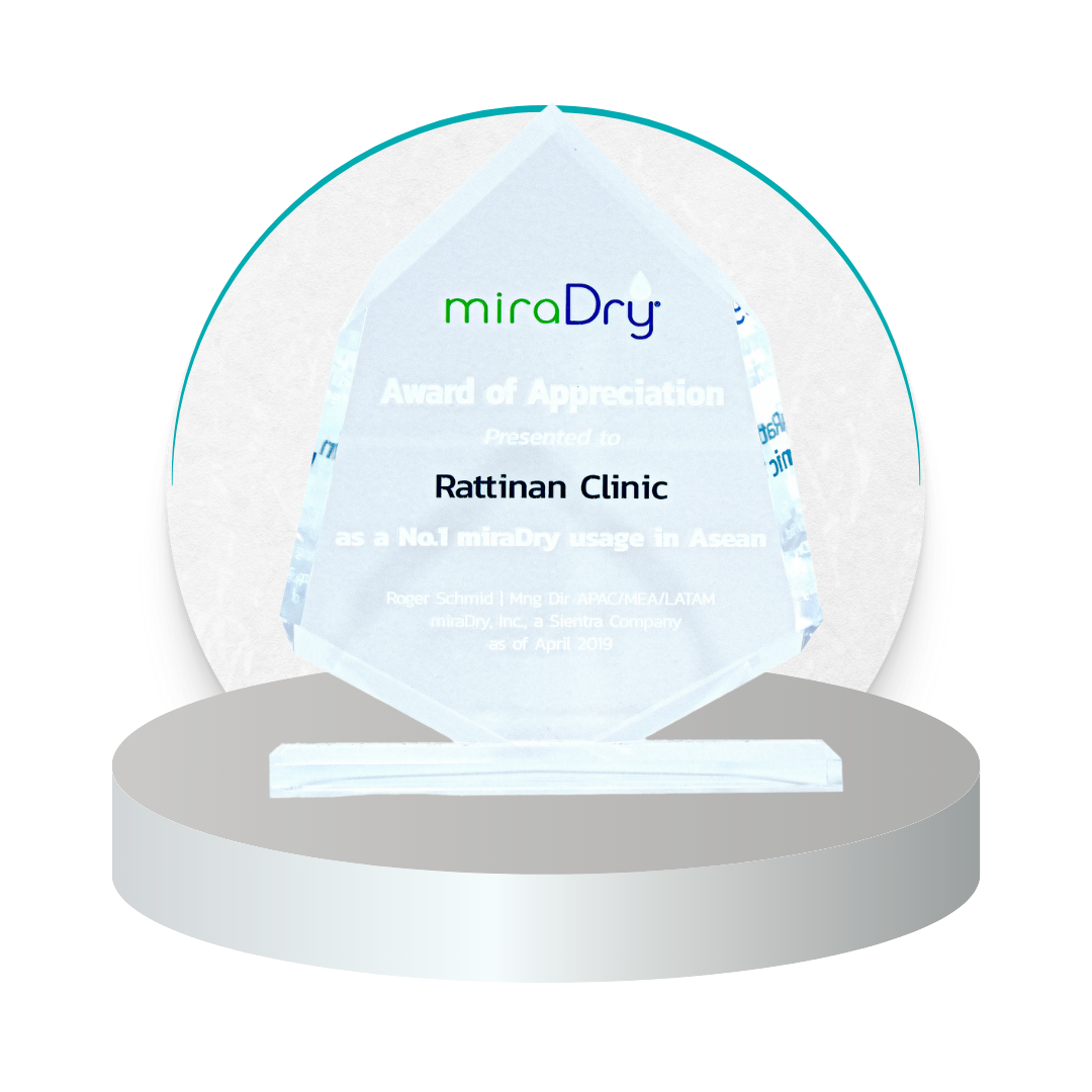 In 2019, Rattinan Clinic was recognized by miraDry Inc. for achieving the highest number of miraDry procedures in ASEAN and ranking 3rd worldwide.