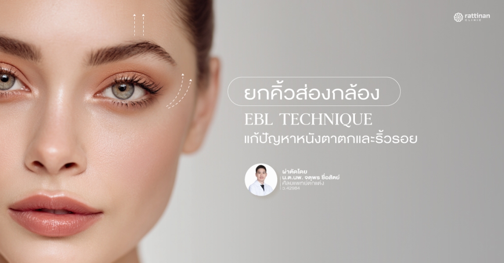 ยกคิ้วส่องกล้อง (EBL) คือการยกคิ้วและหน้าผากด้วยเทคนิคส่องกล้องผ่านแผลเล็ก ช่วยลดริ้วรอย แก้หนังตาตก โดยไม่ต้องผ่าตัดใหญ่ เหมาะกับคนที่อยากดูหน้าอ่อนเยาว์อย่างเป็นธรรมชาติ ปรึกษาแพทย์ฟรี ที่ รัตตินันท์ คลินิก